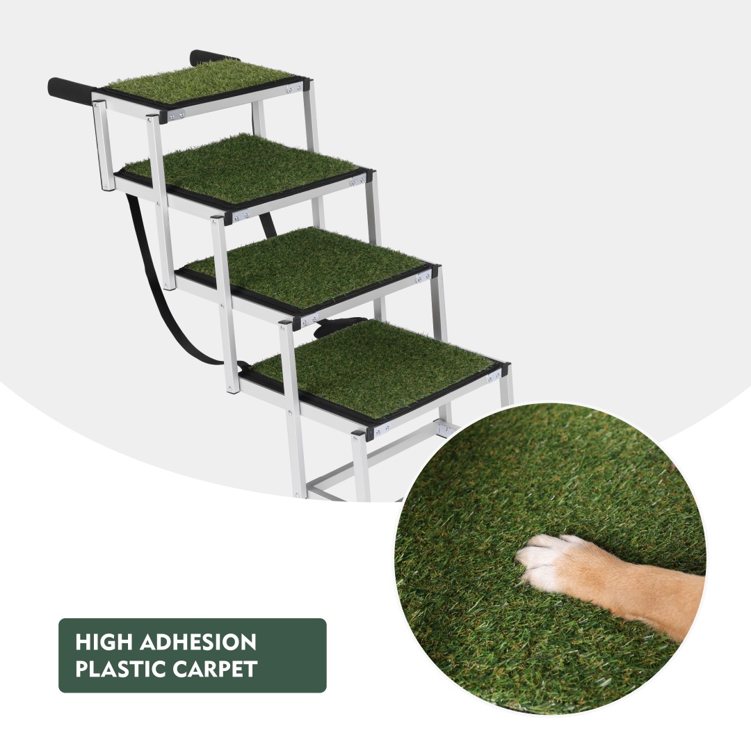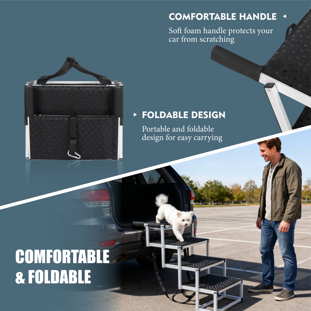 • 【Maximum Safety with Non-Slip Tech】Features paw-print textured surfaces on every step for superior traction. Integrated safety carabiners lock securely onto vehicle edges, creating a rock-solid anchor that prevents shifts – critical for senior dogs or pets with joint issues.