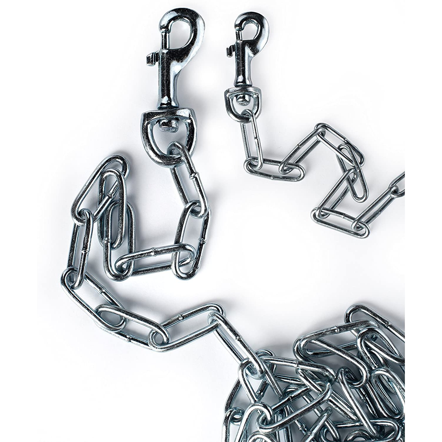 Prevue Pet Products medium-duty 10Æ tie-out chain 2113 is designed for dogs up to 55 lbs. Zinc plated welded oval links are strong, ensuring your dog stays safe and secure. Premium quality die-cast iron swivel bolt snaps at both ends connect easily and prevent tangling. Medium duty tie out chain is 10 foot long and 2.5 mm in diameter.